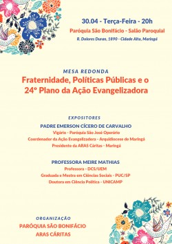 Mesa redonda: Fraternidade, Políticas Públicas e o 24º Plano da Ação Evangelizadora