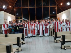O coral maringaense Cobra Coral se apresentou neste dia 12 de outubro (Solenidade de Nossa Senhora Aparecida) no Pontifício Colégio Pio Brasileiro, em Roma. O Cobra Coral é regido pelo diácono Marcos Geandré, da Catedral de Maringá, e está fazendo a segunda turnê pela Europa.Na foto, o coral co...