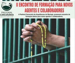 A Pastoral Carcerária da Arquidiocese de Maringá promoverá no dia 30 de junho (sábado) formação para novos agentes e colaboradores. Será no salão da capela São Vicente de Paulo, paróquia Nossa Senhora da Liberdade.Informações pelo telefone-watss 044 9 9951 56 04. ...