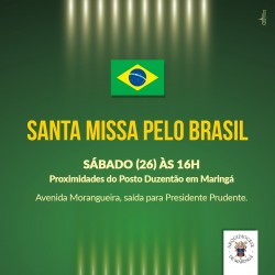 Sábado (26) às 16h nas proximidades do Posto Duzentão em Maringá - Avenida Morangueira, saída para Presidente Prudente.O Arcebispo de Maringá, Dom Anuar Battisti, convida as famílias para a Santa Missa pelo Brasil, que será celebrada nesse sábado (26) às 16h nas proximidades do Posto Duzentão em ...
