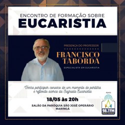 O padre professor Francisco Taborda, um dos maiores estudiosos na temática Eucaristia no Brasil, estará em Maringá na próxima sexta-feira, 18 de maio, para uma palestra no salão da paróquia São José Operário. Início às 20h, com entrada franca. Padre Francisco Taborda é Doutor em Teologia p...