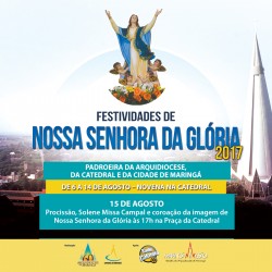 Terça-feira, dia 15 de agosto, Maringá celebrará o dia da padroeira da cidade e da Arquidiocese, Nossa Senhora da Glória. Às 7h, na Catedral Basílica Menor, haverá o Solene Ofício de Nossa Senhora e a (re) entronização de imagens da Virgem Maria nos lares. Às 9h, milhares de pessoas são esperadas...