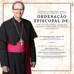 A Arquidiocese de Maringá-PR tem a alegria de convidá-lo (a) para a Celebração Eucarística da ordenação episcopal do mons. Bruno Elizeu Versari, nomeado pelo papa Francisco bispo coadjutor de Campo Mourão-PR. A santa missa será celebrada no próximo domingo, 25 de junho de 2017, às 15h na Catedra...