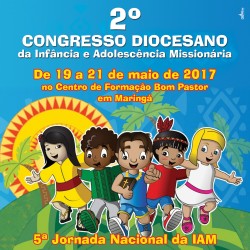 De 19 a 21 de maio de 2017 será realizado no Centro de Formação Bom Pastor em Maringá o 2º Congresso Diocesano da Infância e Adolescência Missionária. Em todo o Brasil, a 5ª Jornada Nacional da IAM é celebrada no dia 28 de maio, mas em Maringá a jornada será antecipada para o dia 21 de maio, por...