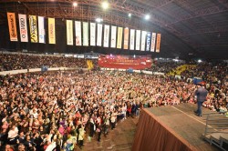 O público cantou e rezou com o Pe. Reginaldo Manzotti na noite desta quinta-feira (4), no primeiro show da Expoingá 2017. A chuva não impediu que mais de 12 mil fiéis lotassem a arena Joaquim Romero Fontes, do Parque de Exposições Francisco Feio Ribeiro, para assistir a missa seguida de sh...