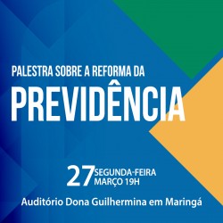 O Conselho de Leigos e Leigas da Arquidiocese de Maringá, a Coordenação Sindical Trabalhista de Maringá e Região e a Escola de Cultura, Fé e Política da Arquidiocese de Maringá promoverão no dia 27 de março, segunda-feira, palestra sobre a Reforma da Previdência com o ex-presidente do Instituto...