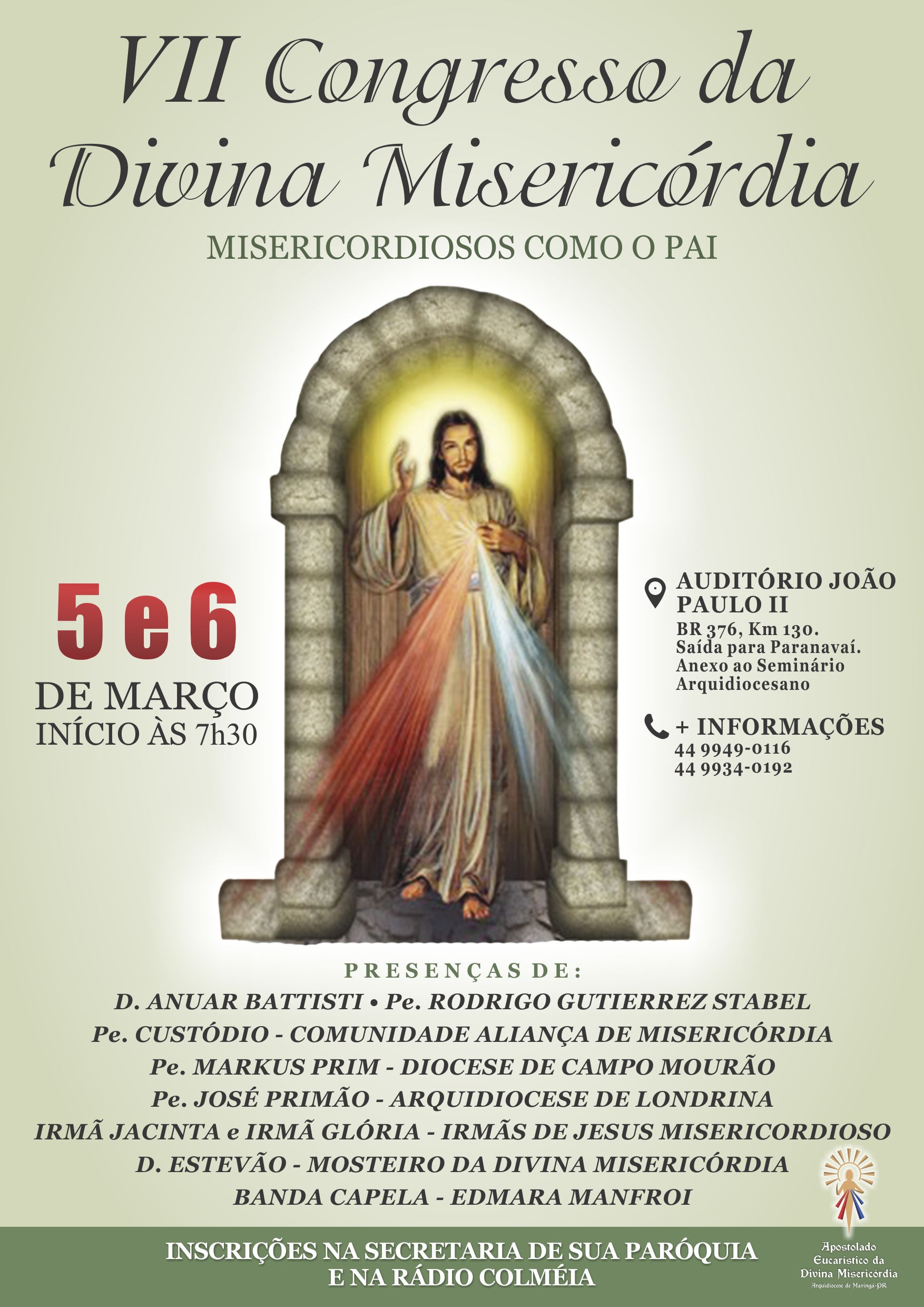 Sétimo Congresso da Divina Misericórdia em Maringá: Dias 05 e 06 de março