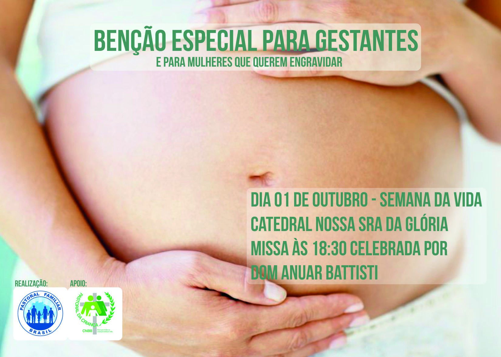 Dentro da programação da Semana Nacional da Vida 2015 a Arquidiocese de Maringá, por meio da Pastoral Familiar e apoio da Pastoral da Criança, irá realizar uma missa especial para as gestantes e mulheres que querem engravidar. A santa missa presidida por dom Anuar Battisti será celebrada dia 01 de o...