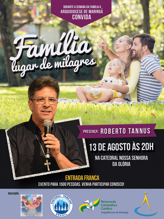 “Família, lugar de milagres” será o tema da palestra que será proferida pelo pregador Roberto Tannus, da Arquidiocese de Goiânia-GO, dia 13 de agosto às 20h na catedral basílica menor Nossa Senhora da Glória em Maringá. O evento faz parte da programação da Semana Nacional e Municipal da Família que ...