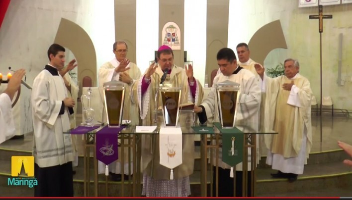 WebTV: Dom Anuar cita roubo à Sacrário em Marumbi na missa do Crisma na Catedral de Maringá