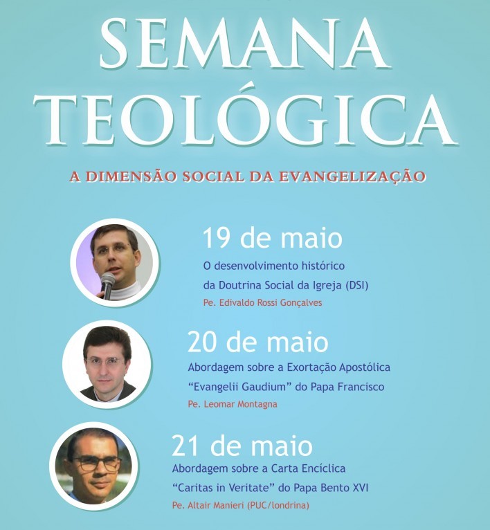 A Escola de Teologia para Cristãos Leigos da Arquidiocese de Maringá promove a Semana de 19 a 21 de maio com o tema: A Dimensão Social da Evangelização. O evento será realizado no salão da Paróquia Santo Antônio de Pádua em Maringá das 19h às 22h30. O investimento é de R$20 e as inscrições podem ser...
