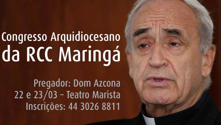 O bispo da Prelazia de Marajó (PA) Dom Jose Luis Azcona será o pregador do Congresso Arquidiocesano da Renovação Carismática Católica (RCC) que está programado para os dias 22 e 23 de março de 2014 no Teatro Marista. Dom Azcona é conhecido internacionalmente pela luta contra o tráfico humano e de ar...