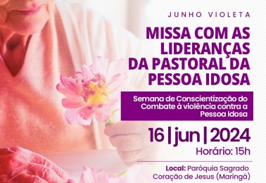 Em vista da Semana de Conscientização do Combate à Violência contra a Pessoa Idosa (15 a 22 de junho) a Pastoral da Pessoa Idosa (PPI) da Arquidiocese de Maringá convida a todos para uma Missa especial com as lideranças da Pastoral.A Missa será celebrada no dia 16 de junho às 15h, na igreja matriz d...