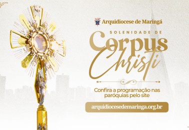 A Arquidiocese de Maringá comunica os horários das Missas de Corpus Christi, na quinta-feira, 30 de maio, em todas as paróquias dos 27 municípios que pertencem ao seu território.Catedral Basílica Menor Nossa Senhora da Glória, Maringá- 7h | Santa Missa.- 16h | Santa Missa solene e procissão euc...