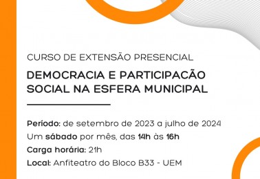 A Universidade Estadual de Maringá (UEM) e a Arquidiocese de Maringá promovem, em parceria, o curso de extensão “Democracia e participação social na esfera municipal!”, com o objetivo de oferecer formação de agentes da sociedade civil para a participação social em espaços políticos, pensando mais pr...