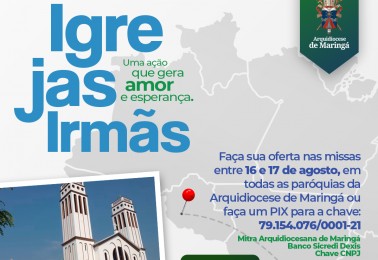 No final de semana dos dias 16 e 17 de agosto, as coletas das missas em todas as 59 paróquias da Arquidiocese de Maringá serão destinadas à Diocese de Guajará-Mirim, Rondônia. Dentro do projeto Igrejas Irmãs, da Comissão Episcopal para a Ação Missionária e Cooperação Intereclesial da CNBB, a Arquidi...